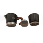 The Moka Post is also known as ‘stove-up espresso-maker’ or ‘magic pot’ or ‘Moka Express’. It’s an inconspicuous, two-piece kettle, placed on the stove, which prepares great coffee in just a few minutes. You just need to add water and ground coffee. Simple steps: